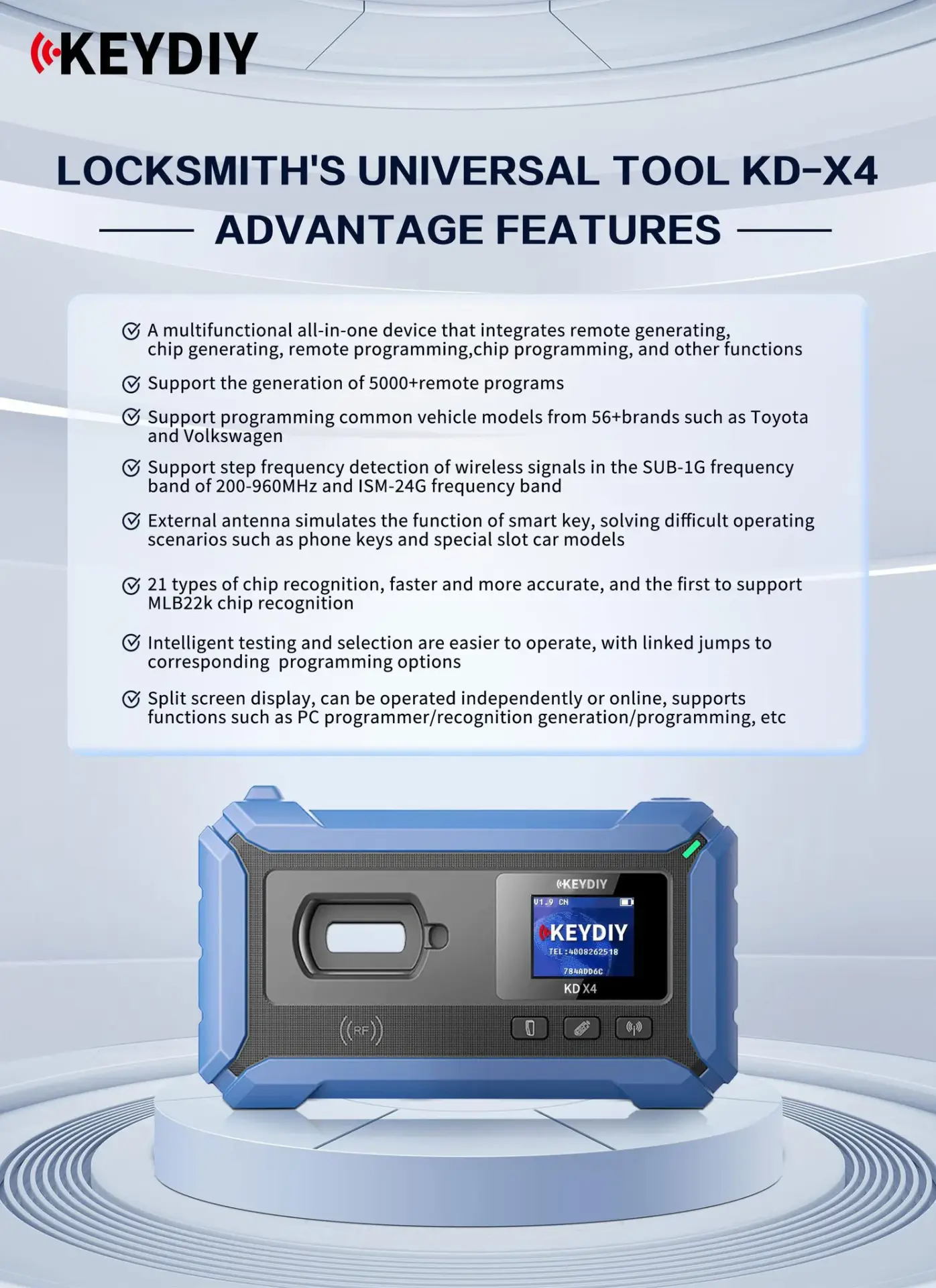 KEYDIY KD-X4 Locksmith's Universal Tool Features: